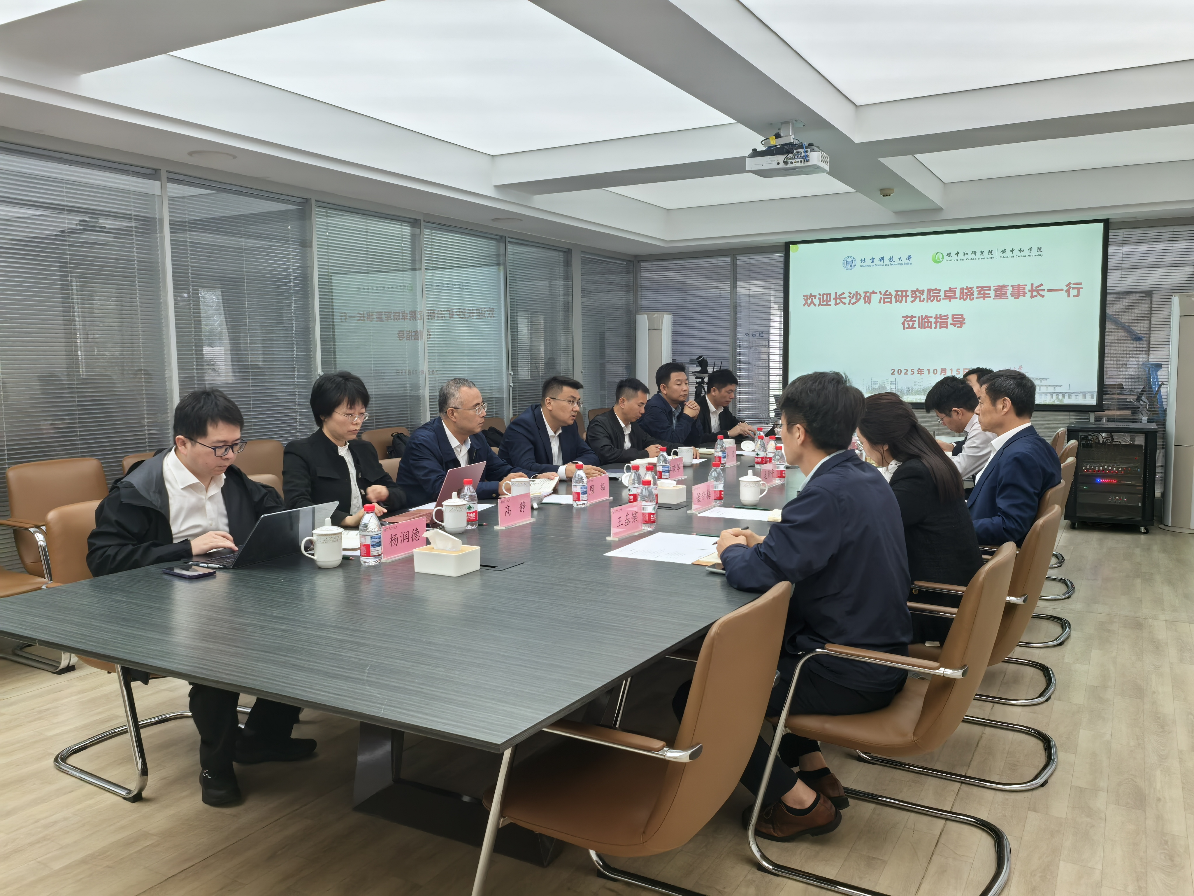 10月15日,中国五矿集团长沙矿冶研究院党委书记、董事长卓晓军率队莅临我院,就深化校企合作、共促产学研深度融合等议题进行广泛而深入的交流。长沙矿冶研究院有限责任公司党委委员、副总经理易峦,北京科技大学碳中和研究院、碳中和学院院长毛新平院士,研究院执行院长汪水泽,学院执行院长侯新梅,以及相关单位负责人、教师代表共同出席会议。